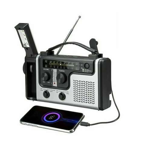 Luz DE EMERGENCIA solar para Exteriores de 5W, radio de advertencia temprana de banda completa, Banco de energía manual para carga de teléfono móvil, calentador de manos