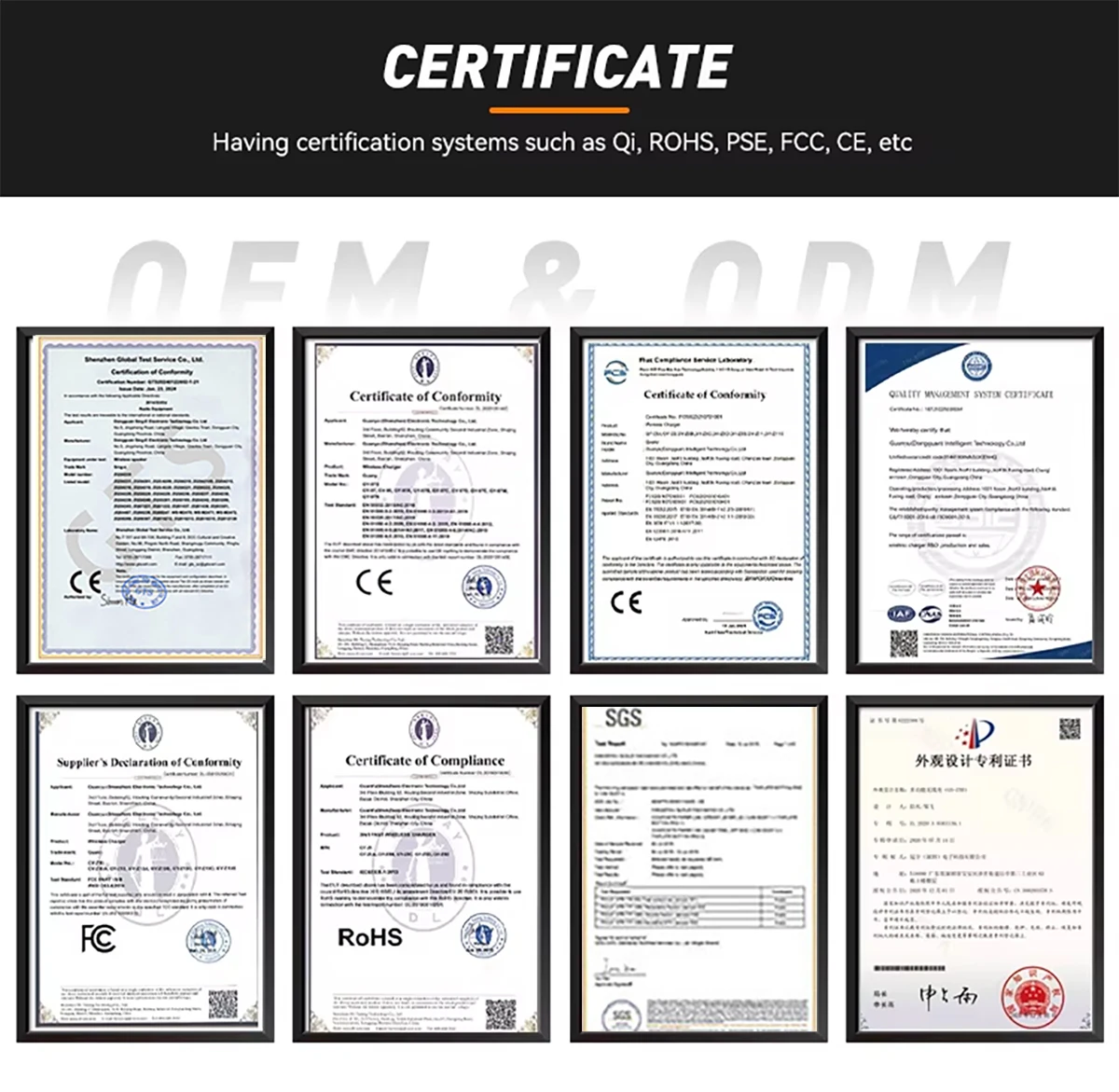 The product covers a full range of Bluetooth speakers and wireless chargers, and has passed CE, FCC, and RoHS international certifications. It has the characteristics of clear sound quality, efficient charging, safety and stability, and is suitable for various scenarios such as personal consumption, gift customization, and supermarket retail. With 15 years of industry accumulation, we have established standardized production workshops and a full process quality control system. We have sufficient stock of conventional products and can undertake wholesale and personalized customization of finished products, strictly ensuring delivery cycles. To provide inquiries, sample making, and sample sending services for both new and old customers OEM/ODM、 Complete process services including shipping and shipping customs clearance.